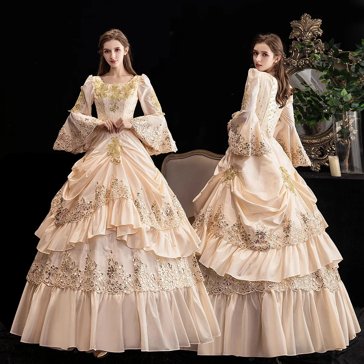 This gown is more than a costume — it is an expression of elegance, confidence, and timeless beauty. Designed to make a statement, it allows every wearer to step into a world of royalty, grace, and historical charm.
