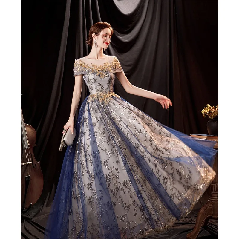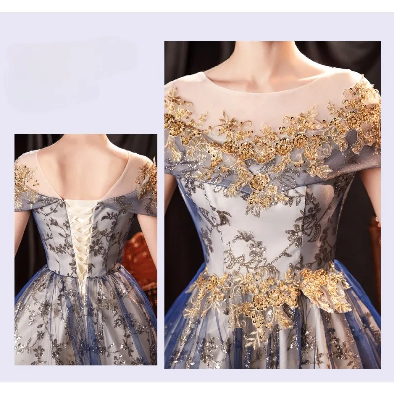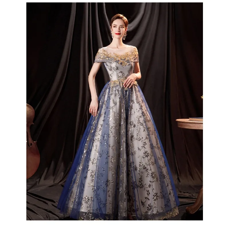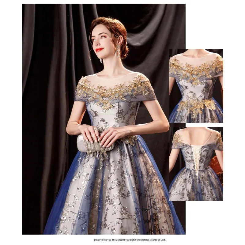 Elegant Blue Polyester Ball Gown – Nenwo