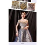 Silhouette: Ball gown with an A-line skirt and high waist, flattering every figure.