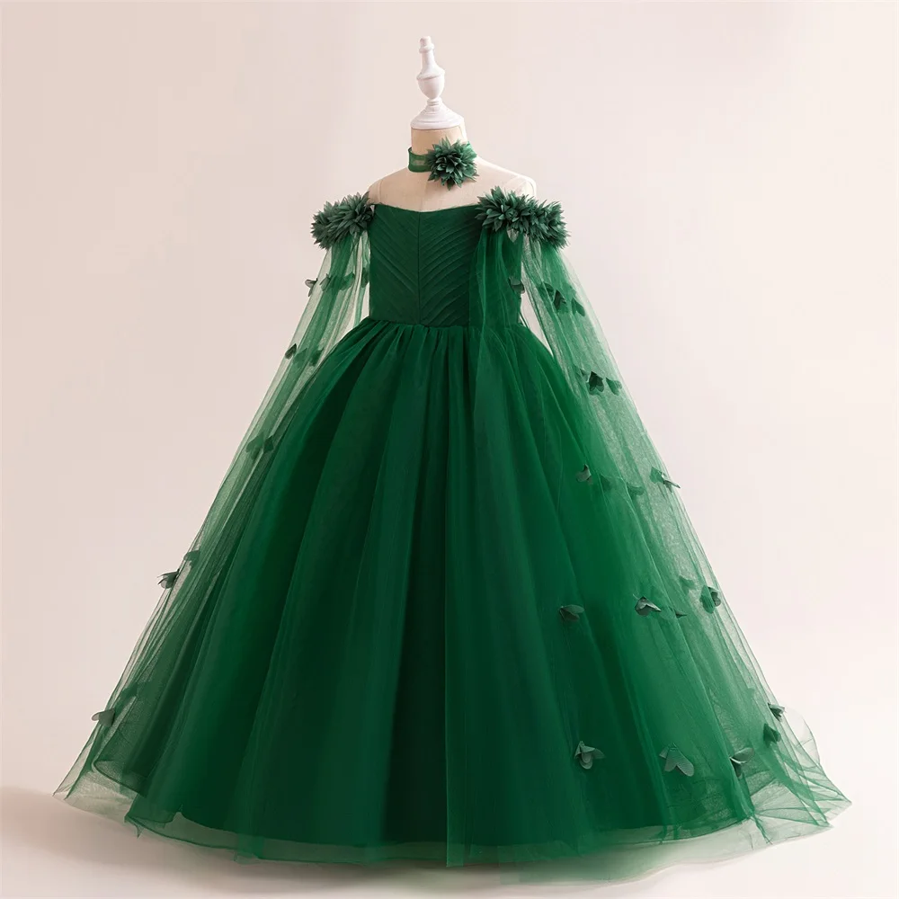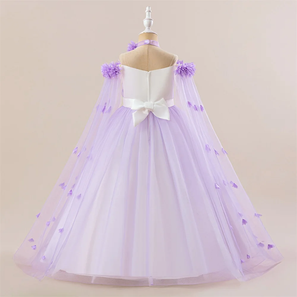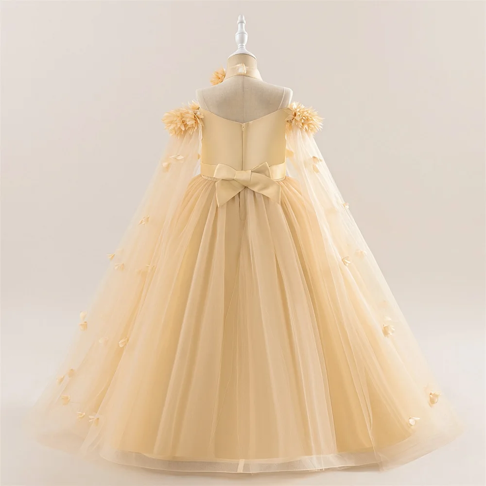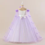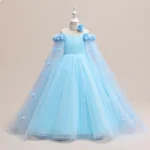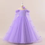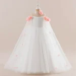 This elegant girls’ ball gown dress is beautifully designed for special occasions, combining a cute style with a classic formal