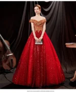 Red Prom & Evening Dress – Gilded Wedding, Stage, and Solo Performance Gown