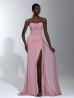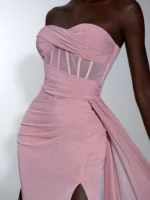 Step into elegance with this pink strapless maxi dress, perfect for evening parties, weddings, graduations, and special occasions. Designed for women who love sophistication with a hint of drama, this dress combines flattering lines with chic detailing.