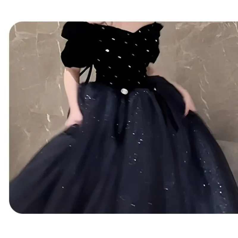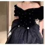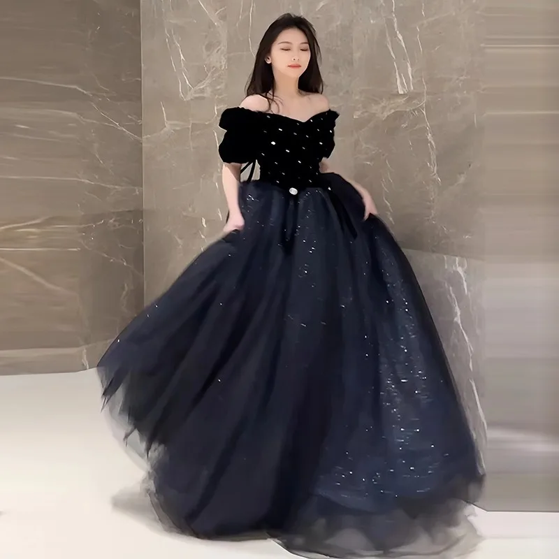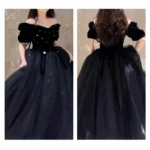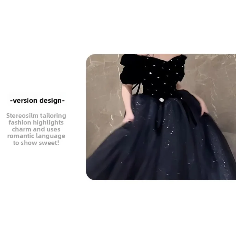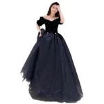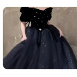 Women’s Summer One-Shoulder Black Evening Gown – Glitter & Puff Skirt