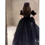 This elegant girls’ ball gown dress is beautifully designed for special occasions, combining a cute style with a classic formal