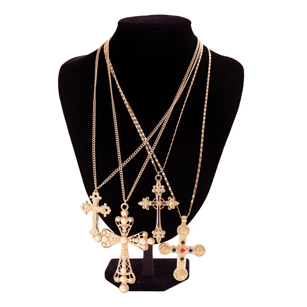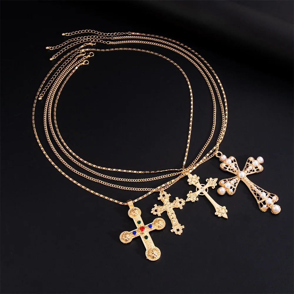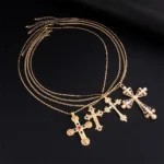 Zircon Cross Pendant Necklace Set – Vintage Y2K Gold Statement Jewelry for Women
